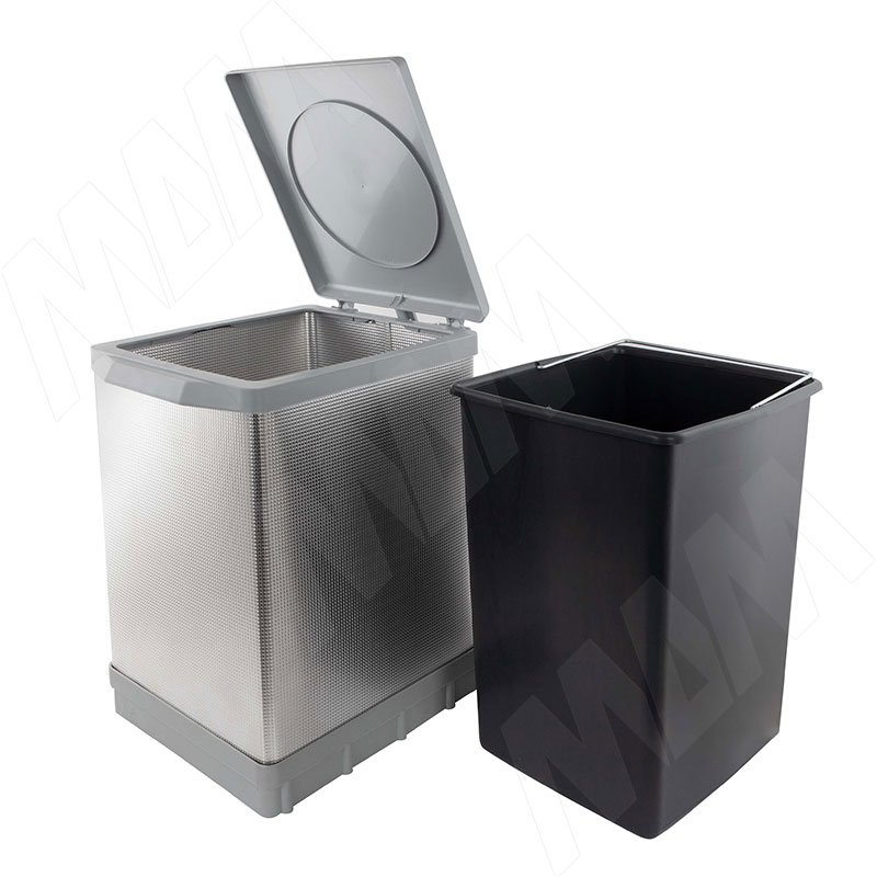 TOWER Система сортировки и хранения, 1 емкость (18л), авт. крышка, нижнее крепление, пластик+алюминий фото товара 4 - PAL609/1 ALL