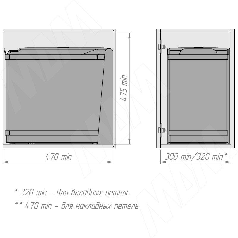 Установка системы TOWER  для сортировки мусора с двумя ведрами, нижнее крепление (артикул PA 605/1), схема 2