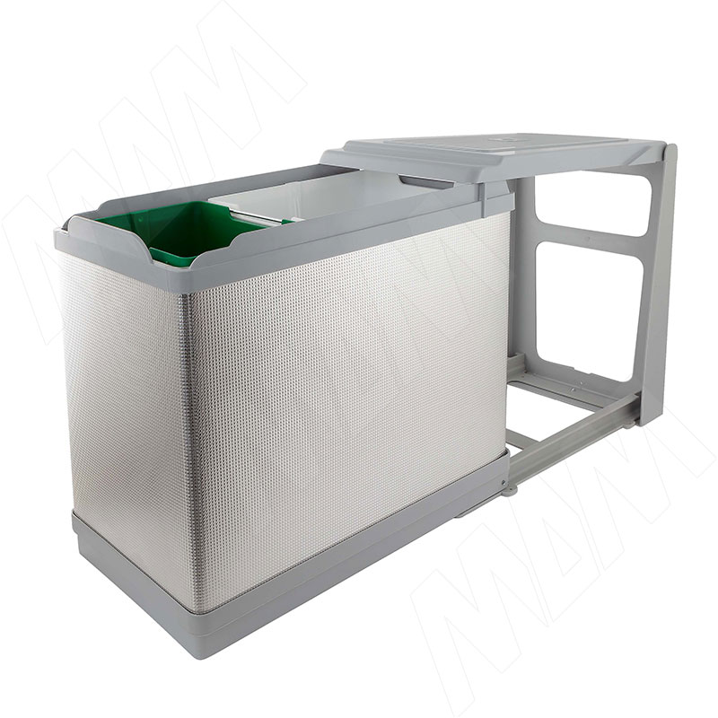 TOWER Система сортировки и хранения, 2 емкости (16л+10л), авт. крышка, нижнее крепление, пластик+алюминий фото товара 3 - PAL605/1 ALL