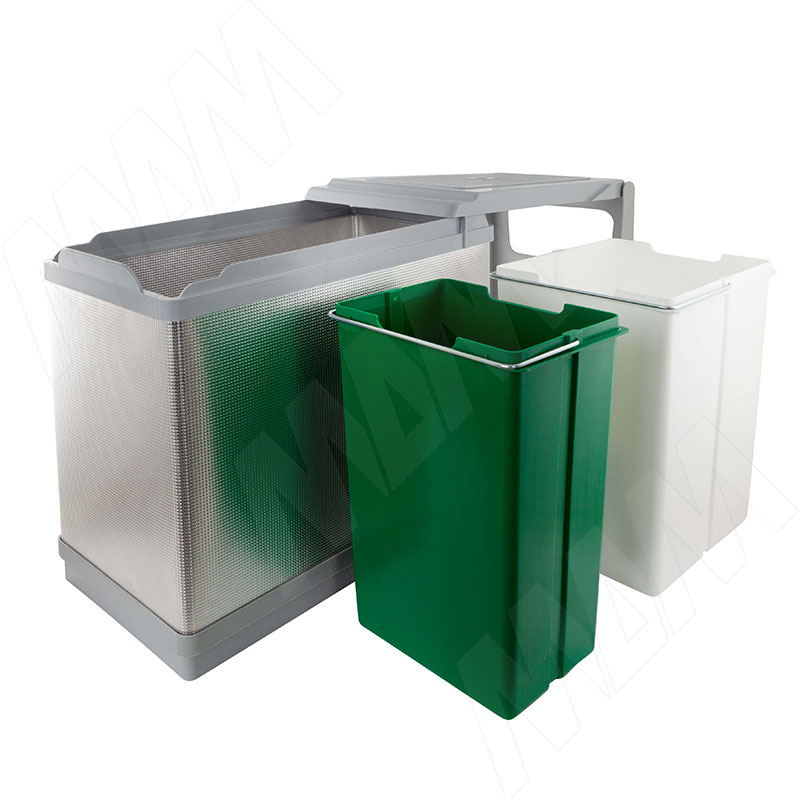 TOWER Система сортировки и хранения, 2 емкости (16л+10л), авт. крышка, нижнее крепление, пластик+алюминий фото товара 2 - PAL605/1 ALL