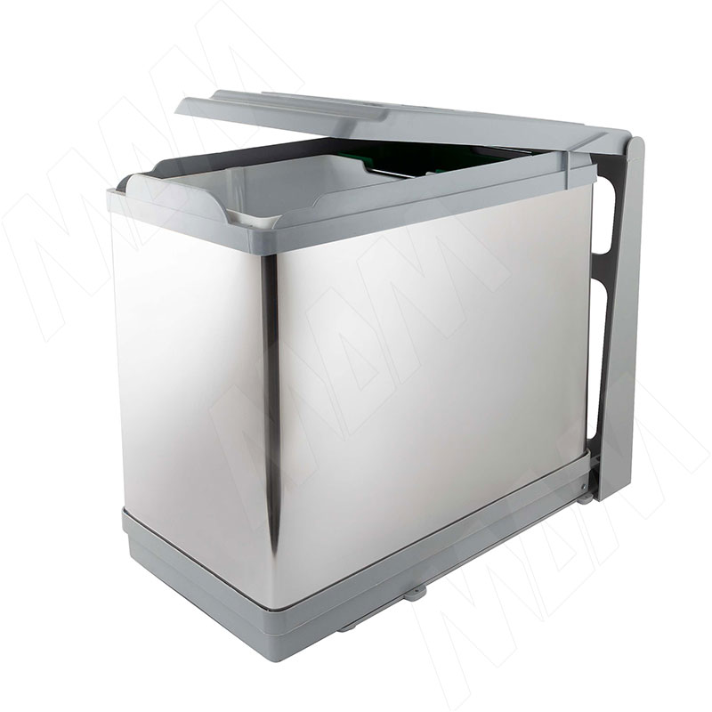 TOWER Система сортировки и хранения, 2 емкости (16л+10л), авт. крышка, нижнее крепление, пластик+нерж.сталь фото товара 2 - PAI605/1