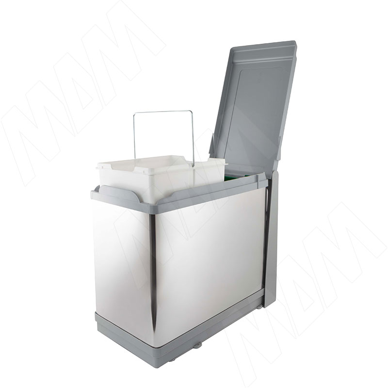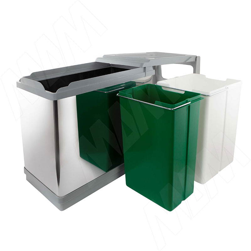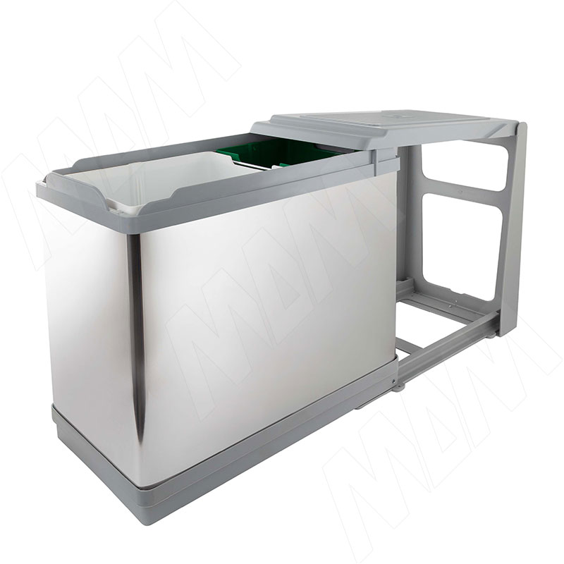 TOWER Система сортировки и хранения, 2 емкости (16л+10л), авт. крышка, нижнее крепление, пластик+нерж.сталь фото товара 1 - PAI605/1