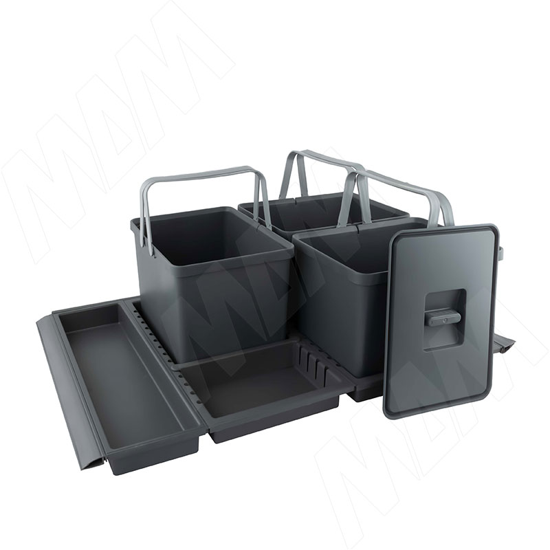 METROPOLIS Система сортировки и хранения, фасад 800мм, 3 емкости с крышкой (12л+12л+12л), цвет серый базальт фото товара 6 - PTC22080507FC97