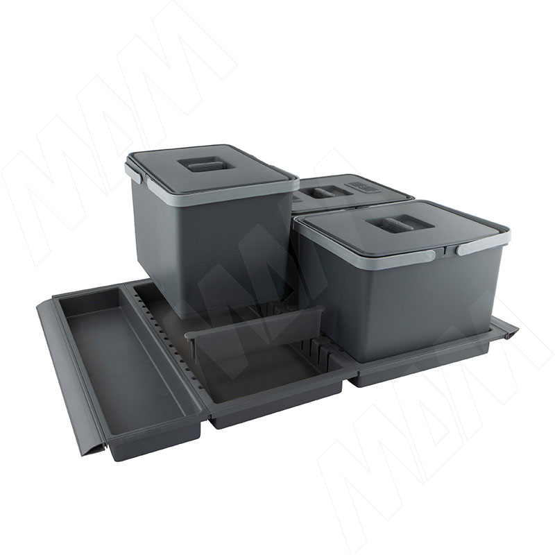 METROPOLIS Система сортировки и хранения, фасад 800мм, 3 емкости с крышкой (12л+12л+12л), цвет серый базальт
