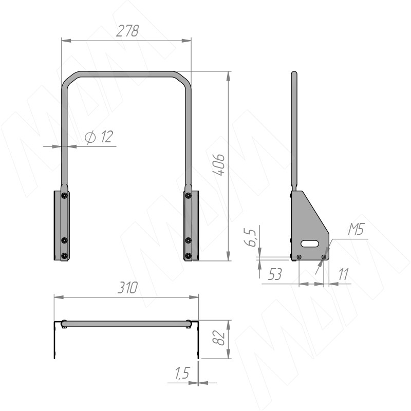 Размеры ручки для системы ведер MOVEBOX F40 (артикул WRB400-AS01DG)