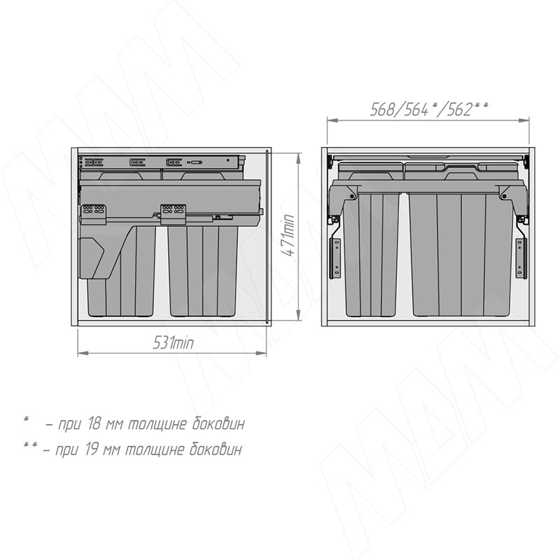 Установка системы PROBOX MAX F60 для сортировки и хранения, 4 емкости (2x13 л + 2x24 л), для фасадов шириной 600 мм (артикул MBN604-74DGMAX), схема 3 Установка системы PROBOX MAX F60 для сортировки и хранения, 4 емкости (2x13 л + 2x24 л), для фасадов шириной 600 мм (артикул MBN604-74DGMAX), схема 4 Установка системы PROBOX MAX F60 для сортировки и хранения, 4 емкости (2x13 л + 2x24 л), для фасадов шириной 600 мм (артикул MBN604-74DGMAX), схема 5 Установка системы PROBOX MAX F60 для сортировки и хранения, 4 емкости (2x13 л + 2x24 л), для фасадов шириной 600 мм (артикул MBN604-74DGMAX), схема 6 Установка системы PROBOX MAX F60 для сортировки и хранения, 4 емкости (2x13 л + 2x24 л), для фасадов шириной 600 мм (артикул MBN604-74DGMAX), схема 7 Установка системы PROBOX MAX F60 для сортировки и хранения, 4 емкости (2x13 л + 2x24 л), для фасадов шириной 600 мм (артикул MBN604-74DGMAX), схема 8 Установка системы PROBOX MAX F60 для сортировки и хранения, 4 емкости (2x13 л + 2x24 л), для фасадов шириной 600 мм (артикул MBN604-74DGMAX), схема 9