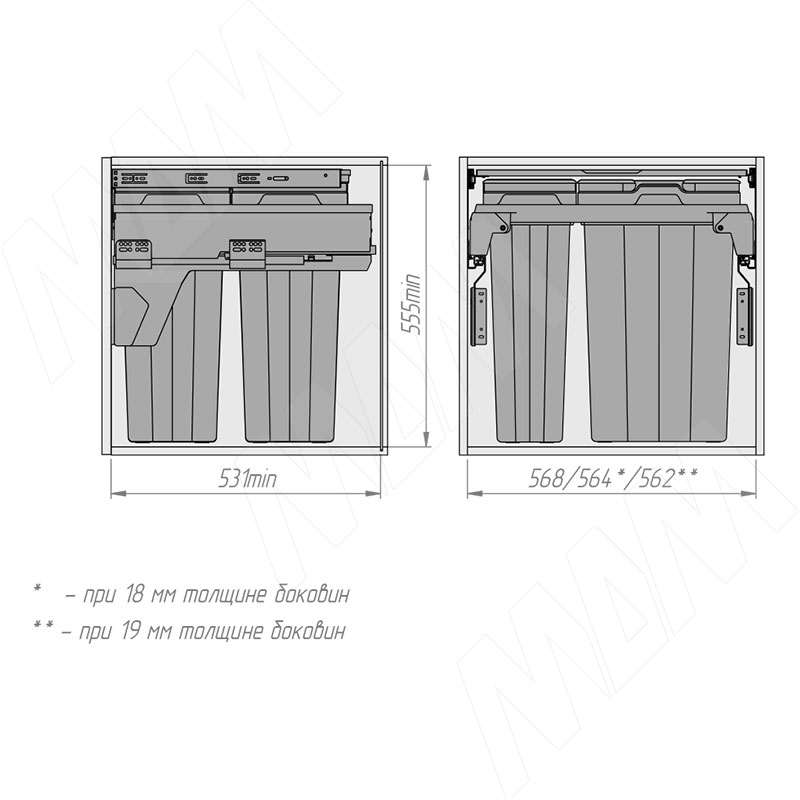 Установка системы PROBOX MAX F60 для сортировки и хранения, 4 емкости (2x15 л + 2x27 л), для фасадов шириной 600 мм (артикул MBN604-84DGMAX), схема 3 Установка системы PROBOX MAX F60 для сортировки и хранения, 4 емкости (2x15 л + 2x27 л), для фасадов шириной 600 мм (артикул MBN604-84DGMAX), схема 4 Установка системы PROBOX MAX F60 для сортировки и хранения, 4 емкости (2x15 л + 2x27 л), для фасадов шириной 600 мм (артикул MBN604-84DGMAX), схема 5 Установка системы PROBOX MAX F60 для сортировки и хранения, 4 емкости (2x15 л + 2x27 л), для фасадов шириной 600 мм (артикул MBN604-84DGMAX), схема 6 Установка системы PROBOX MAX F60 для сортировки и хранения, 4 емкости (2x15 л + 2x27 л), для фасадов шириной 600 мм (артикул MBN604-84DGMAX), схема 7 Установка системы PROBOX MAX F60 для сортировки и хранения, 4 емкости (2x15 л + 2x27 л), для фасадов шириной 600 мм (артикул MBN604-84DGMAX), схема 8 Установка системы PROBOX MAX F60 для сортировки и хранения, 4 емкости (2x15 л + 2x27 л), для фасадов шириной 600 мм (артикул MBN604-84DGMAX), схема 9