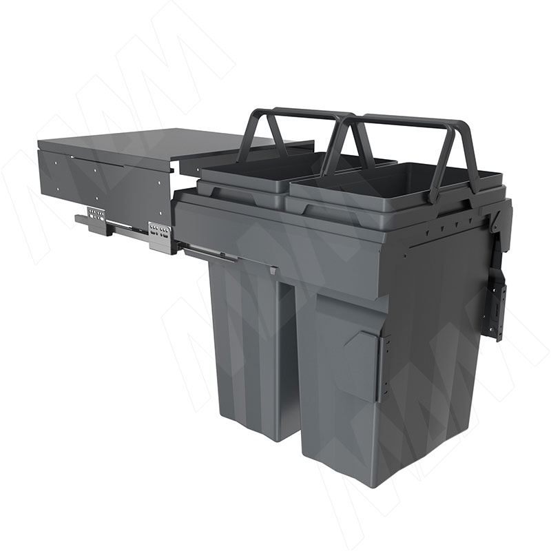 PROBOX F45 Система сортировки и хранения, 2 емкости (2x33), креп. фасада, полн.выдв., плавн.закр., крышка-полка, графит фото товара 3 - MBN452-66DGMID Изображение товара PROBOX F45 Система сортировки и хранения, 2 емкости (2x33), креп. фасада, полн.выдв., плавн.закр., крышка-полка, графит ракурс 3 - MBN452-66DGMID