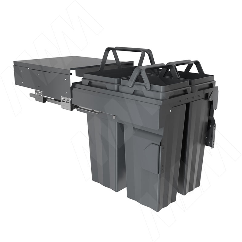 PROBOX F45 Система сортировки и хранения, 3 емкости (2x15+1x33), креп. фасада, полн.выдв., плавн.закр., крышка-полка, графит фото товара 2 - MBN453-63DGMID