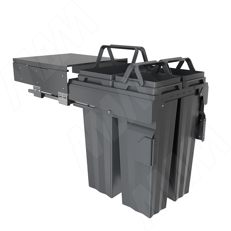 PROBOX F45 Система сортировки и хранения, 3 емкости 69л (2x16+1x37), креп. фасада, полн.выдв., плавн.закр., крышка-полка, графит фото товара 1 - MBN453-69DGMID