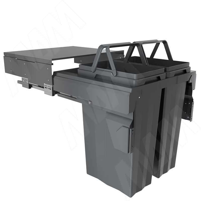 PROBOX F60 Система сортировки и хранения, 2 емкости (2x37), креп. фасада, полн.выдв., плавн.закр., крышка-полка, графит фото товара 3 - MBN602-74DGMID Изображение товара PROBOX F60 Система сортировки и хранения, 2 емкости (2x37), креп. фасада, полн.выдв., плавн.закр., крышка-полка, графит ракурс 3 - MBN602-74DGMID
