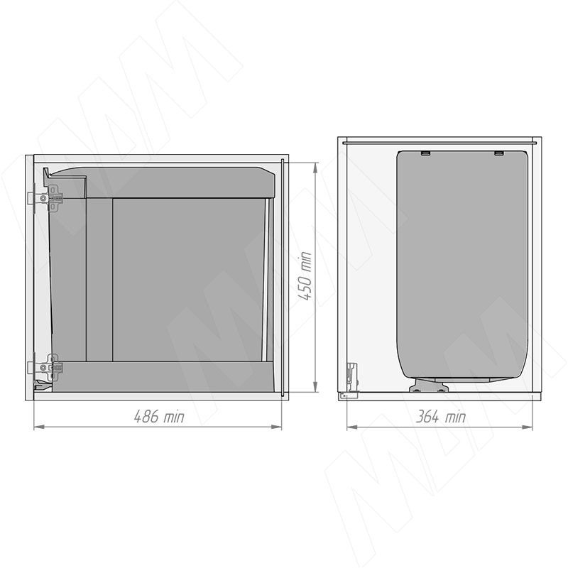LINEA Система сортировки и хранения, 2 емкости (14л+14л), авт. крышка, нижнее крепление, цвет орион серый фото товара 3 - 6246G41PZ Изображение товара LINEA Система сортировки и хранения, 2 емкости (14л+14л), авт. крышка, нижнее крепление, цвет орион серый ракурс 3 - 6246G41PZ