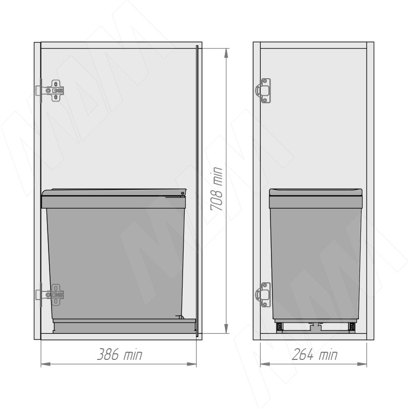 Установка системы LINEA для сортировки и хранения, 1 емкость (16 л), нижнее крепление (артикул 6281MT1IX), схема 1 Установка системы LINEA для сортировки и хранения, 2 емкость (14+14 л), нижнее крепление (артикул 6281MT1IX), схема 2 Установка системы LINEA для сортировки и хранения, 2 емкость (14+14 л), нижнее крепление (артикул 6281MT1IX), схема 3