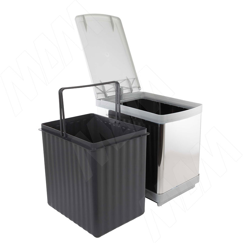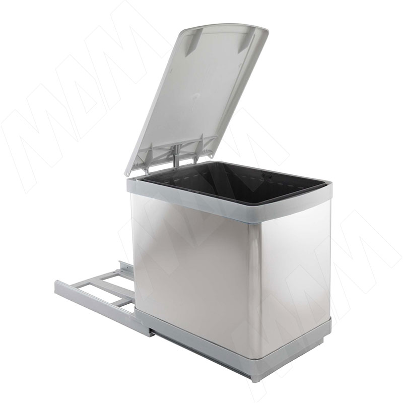 LINEA Система сортировки и хранения, 1 емкость (16л), авт. крышка, нижнее крепление, нерж.сталь,цвет серый металлик фото товара 2 - 6281MT1IX