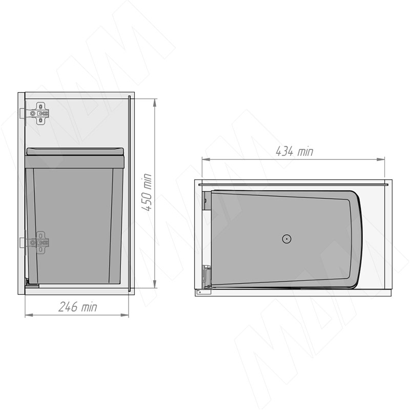 Установка подвесного ведра LINEA 16 л с крышкой для мусора (артикул 6201B31PZ), схема 3 Установка подвесного ведра LINEA 16 л с крышкой для мусора (артикул 6201B31PZ), схема 4
