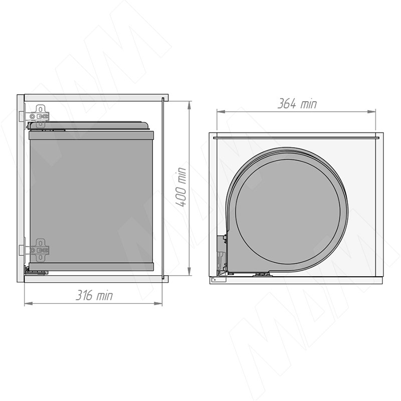 Установка подвесного ведра LINEA 13 л с крышкой для мусора (артикул 6274MT1PZ), схема 3 Установка подвесного ведра LINEA 13 л с крышкой для мусора (артикул 6274MT1PZ), схема 4