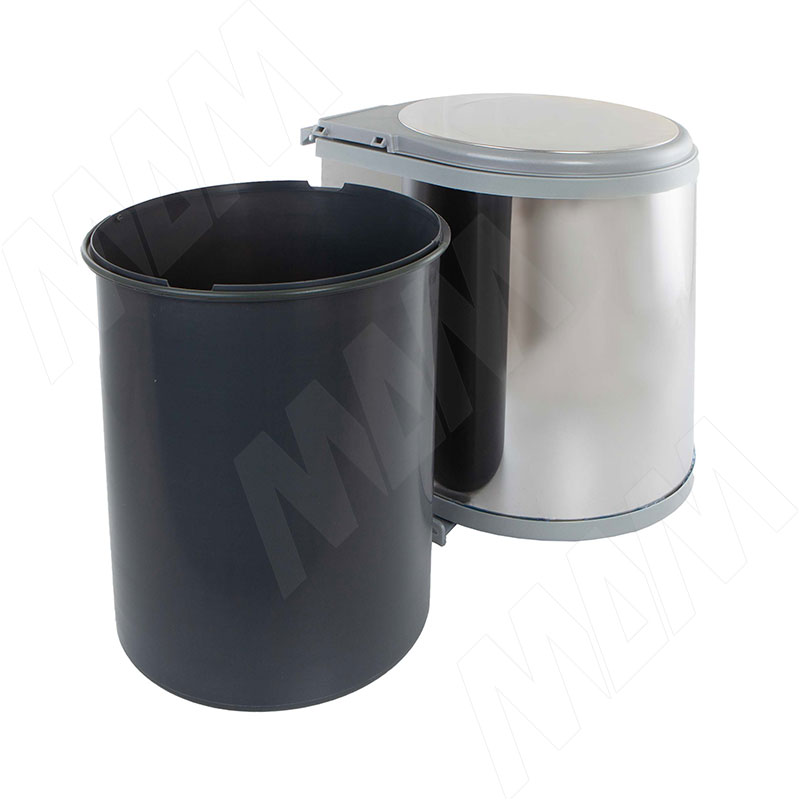 LINEA Ведро для мусора подвесное 13л с крышкой, с крепежом, нерж.сталь, цвет серый металлик  фото товара 2 - 6274MT1PZ Изображение товара LINEA Ведро для мусора подвесное 13л с крышкой, с крепежом, нерж.сталь, цвет серый металлик ракурс 2 - 6274MT1PZ