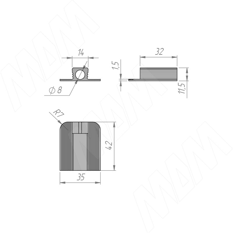 Размеры декоративной заглушки для регулировки корректора (артикул CN010004)