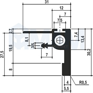 Профиль-ручка со встроенным корректором фасада, L-2450