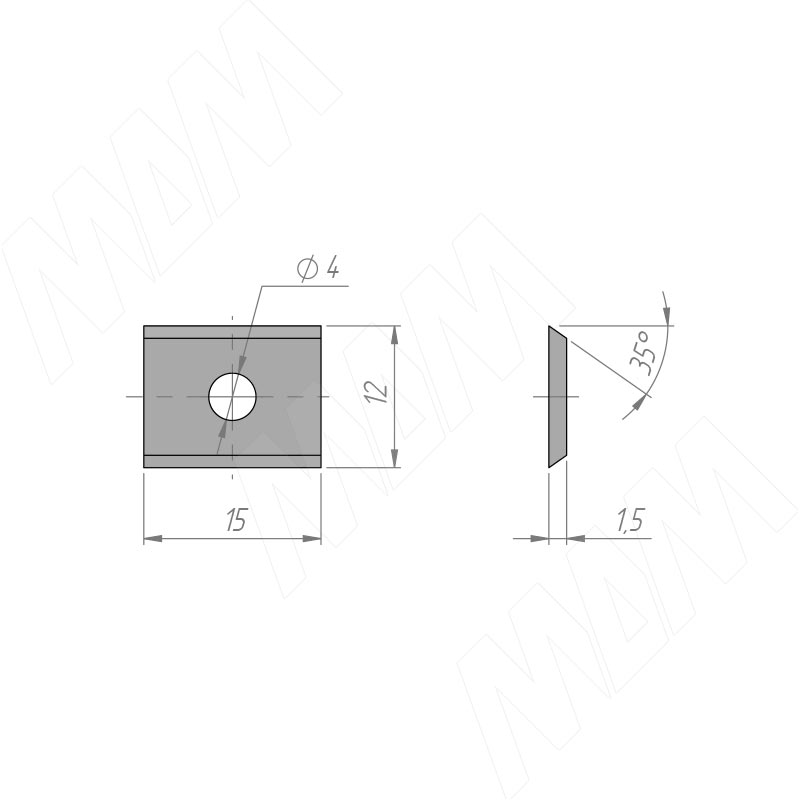 Сменная твердосплавная пластина 15x12x1.5мм FK08, 2-х сторонняя (комплект 10 шт)