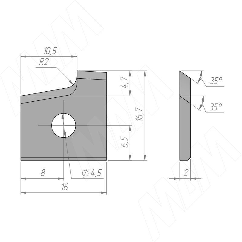 Сменная твердосплавная пластина 16x16,7x2 R=2, левая