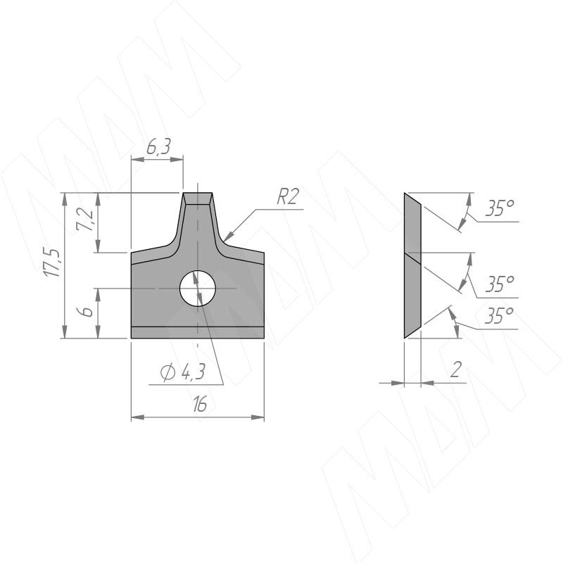 Сменная твердосплавная пластина 16x17,5x2 R2