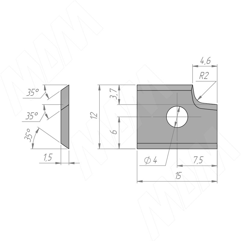 Сменная твердосплавная пластина 15x12x1,5 R2, правая
