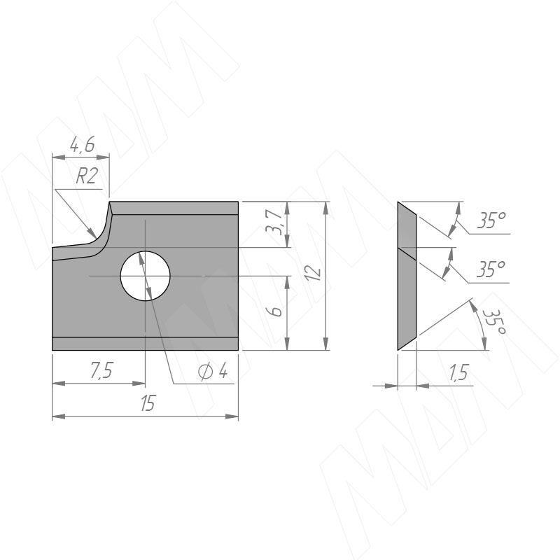 Сменная твердосплавная пластина 15x12x1,5 R2, левая