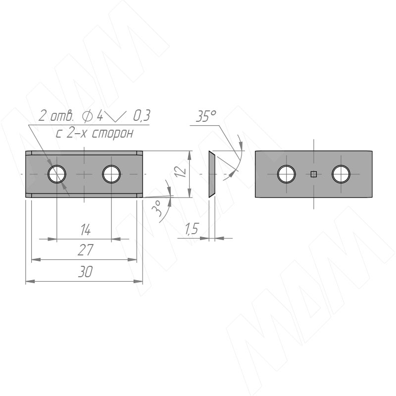 Размеры сменной твердосплавной пластины двухсторонней 30x12x1,5мм 35° с фаской FK08 (артикул F301215-58)
