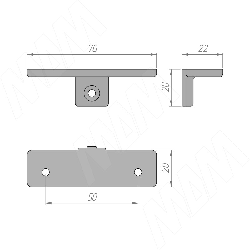 Размеры полкодержателя 70 мм стеллажной (гардеробной) системы UNICO (артикул UN795A70) Установка полкодержателя 70 мм деревянной полки стеллажной (гардеробной) системы UNICO (артикул UN795A70)Установка полкодержателя 70 мм стеклянной полки стеллажной (гардеробной) системы UNICO (артикул UN795A70)