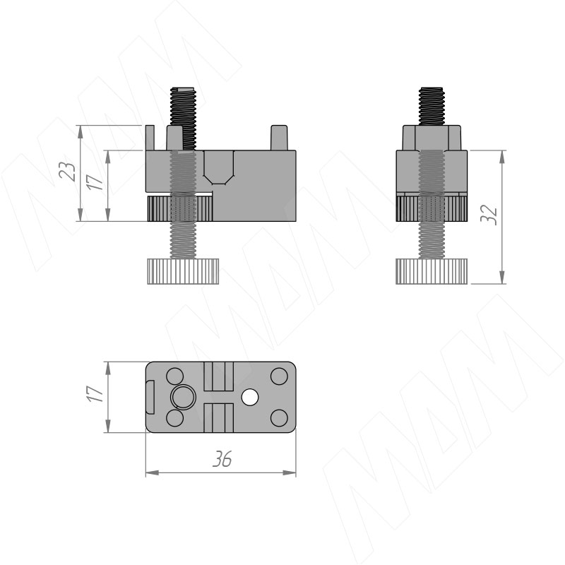 Размеры регулируемой опоры стеллажной (гардеробной) системы UNICO (артикул UN795A02)Установка регулируемой опоры стеллажной (гардеробной) системы UNICO (артикул UN795A02)