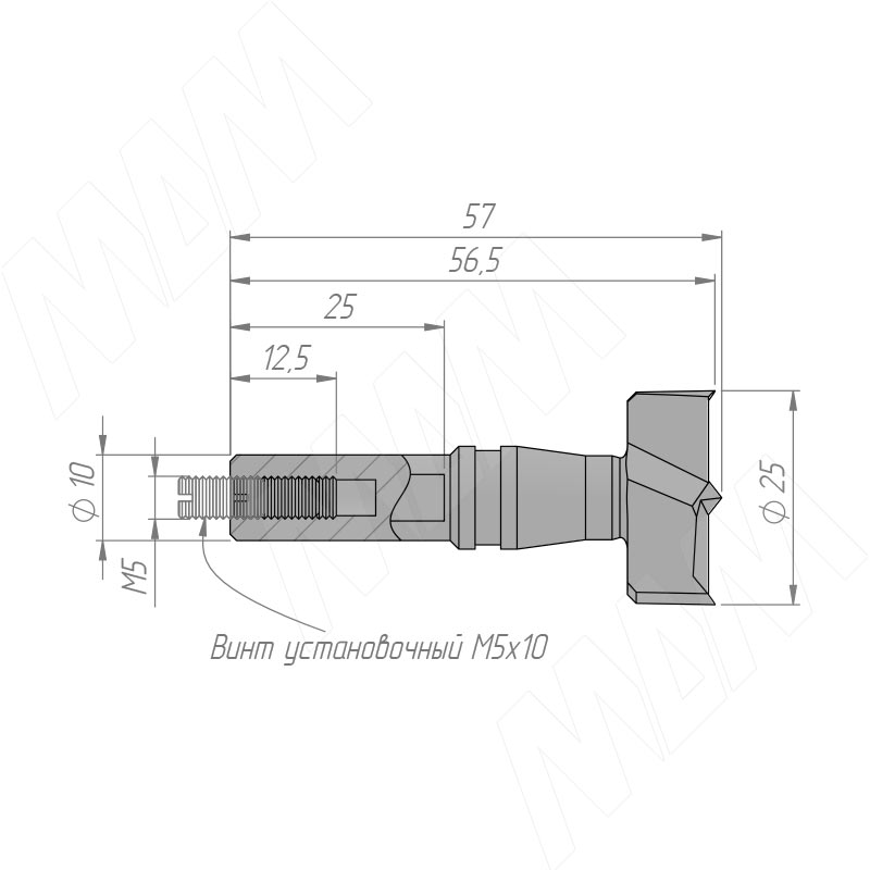 Размеры сверла чашечного D=25 мм, L=57 мм, RH серии Monolit (артикул 13010357)