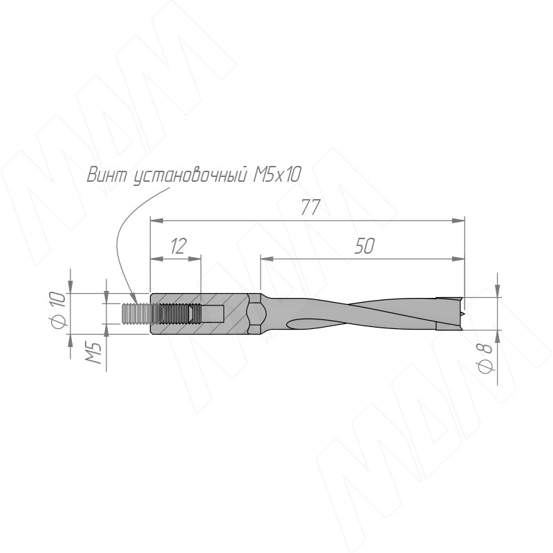 Размеры глухого сверла, D=8 мм, L=77 мм, RH серии Professional (артикул 10010177)
