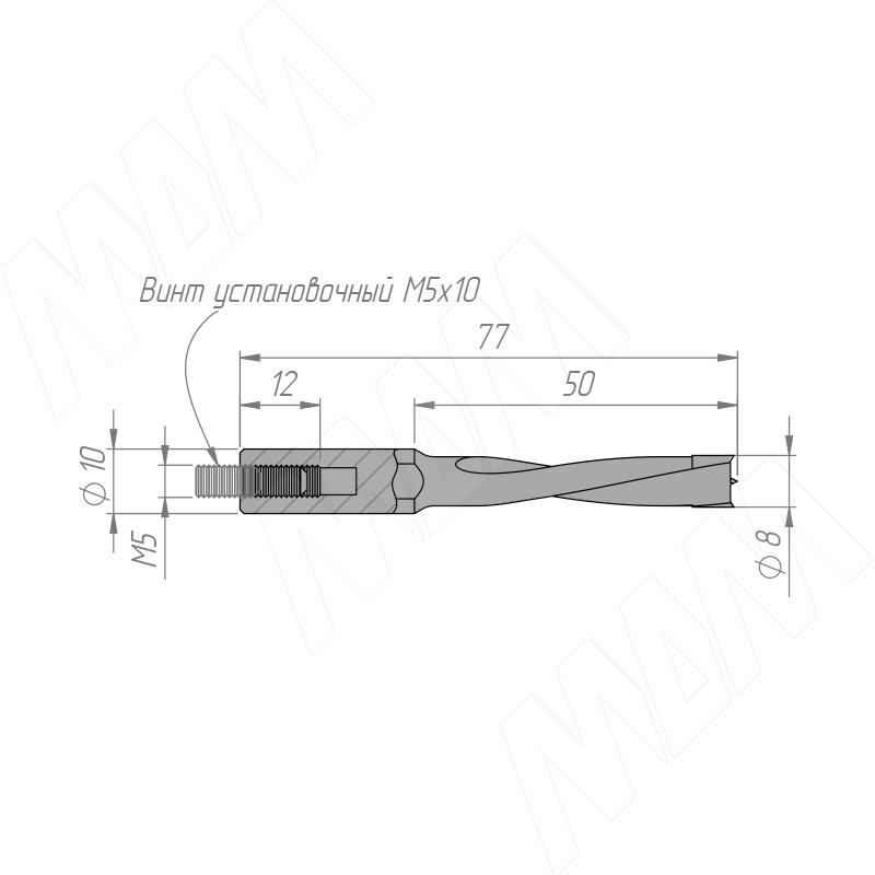 Размеры глухого сверла, D=8 мм, L=77 мм, LH серии Professional (артикул 10020177)