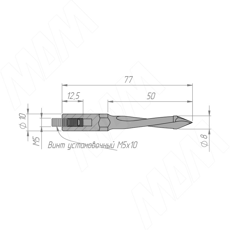 Размеры сквозного сверла, D=8 мм, L=77 мм, LH серия Professional (артикул 20020177)