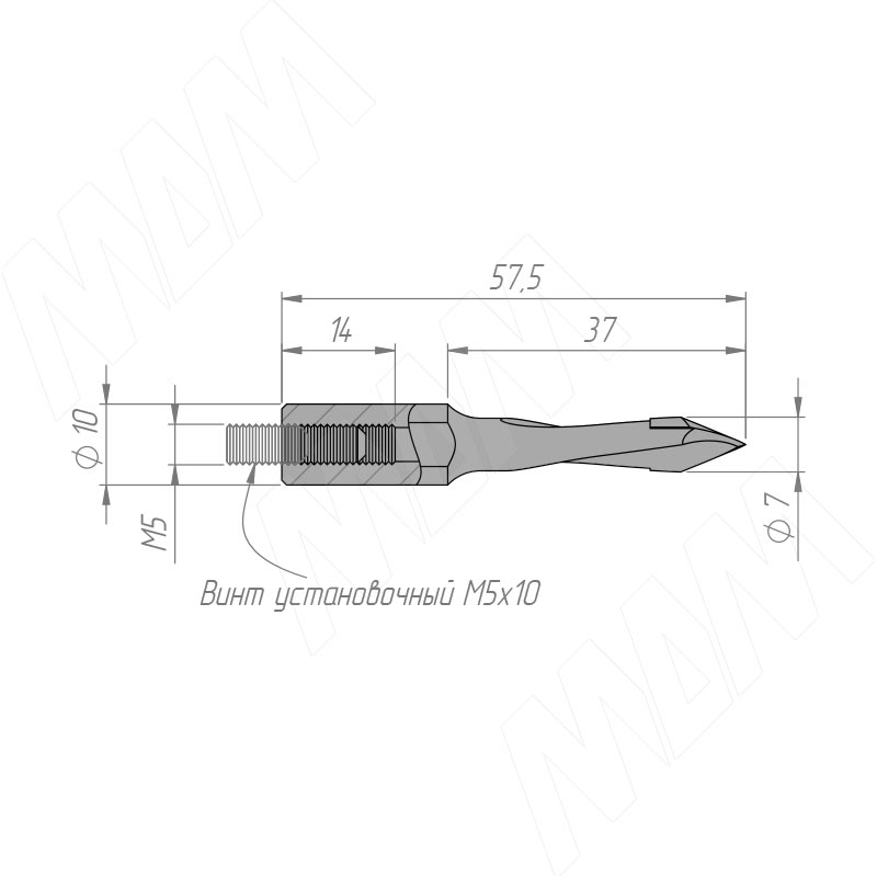 Размеры сквозного сверла, D=7 мм, L=57 мм, LH серия Standard (артикул 11020357)