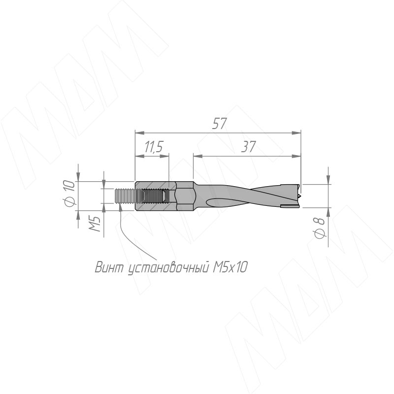 Размеры глухого сверла, D=8мм, L=57мм, RH (артикул 9011457)