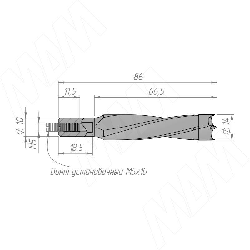 Сверло глухое D=14мм, L=85 мм, B=52мм