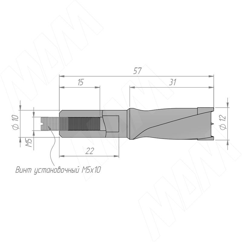 Размеры глухого сверла, D=12мм, L=57мм, LH (артикул 9022457)