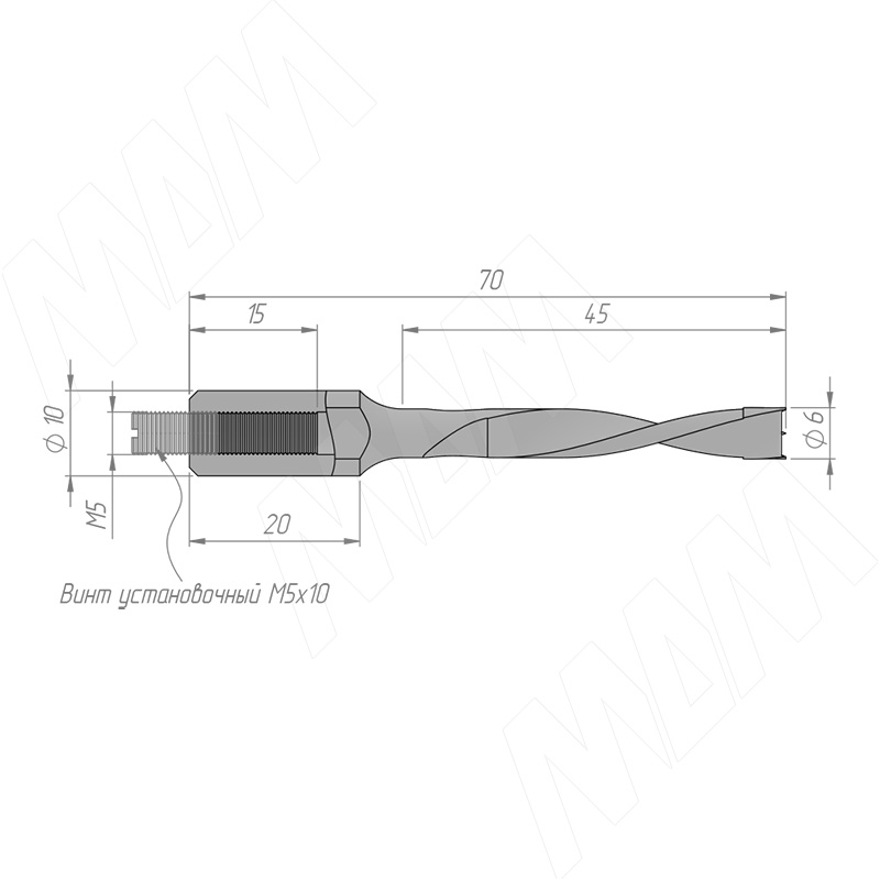 Размеры глухого сверла,D=6мм, L=70мм, LH (артикул 5020270)
