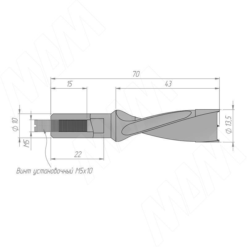 Размеры глухого сверла, D=13.5мм, L=70мм, LH (артикул 50123570)