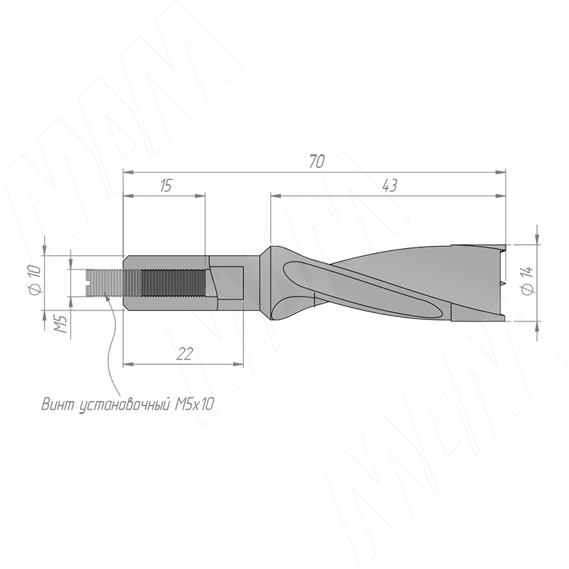 Размеры глухого сверла, D=14мм, L=70мм, RH (артикул 5011470)