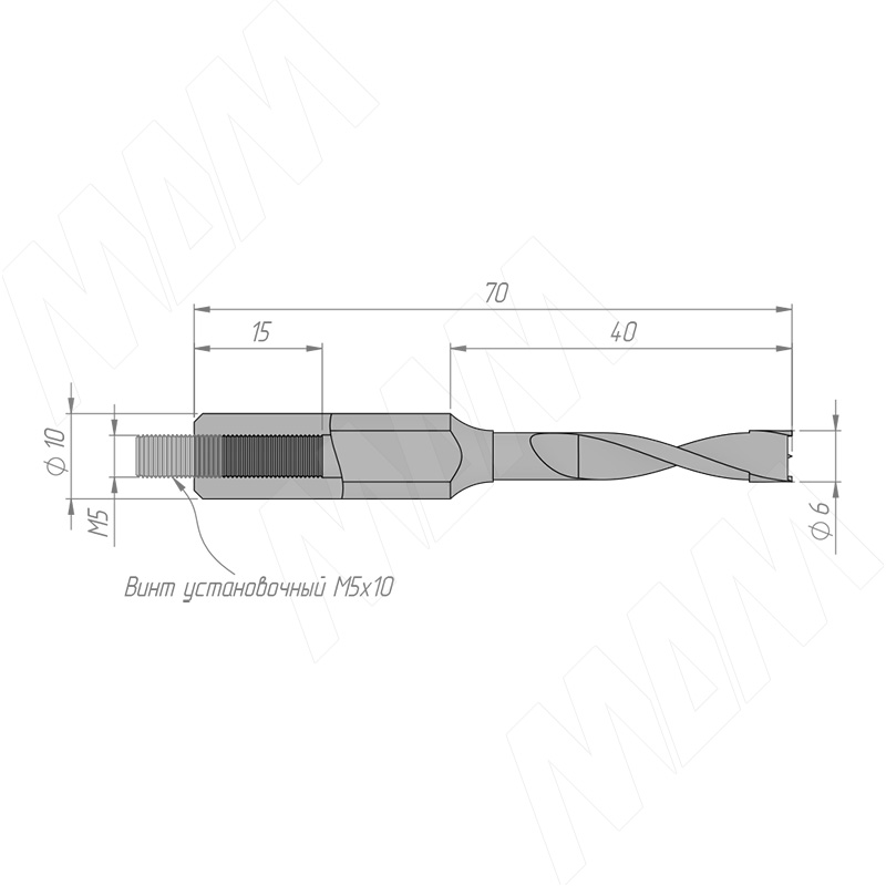 Размеры глухого сверла, D=6мм, L=70мм, RH (артикул 33010270)