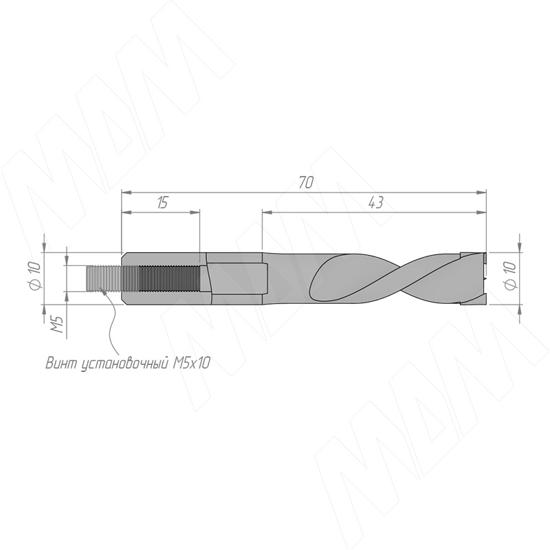 Размеры глухого сверла, D=10мм, L=70мм, LH (артикул 33020670)
