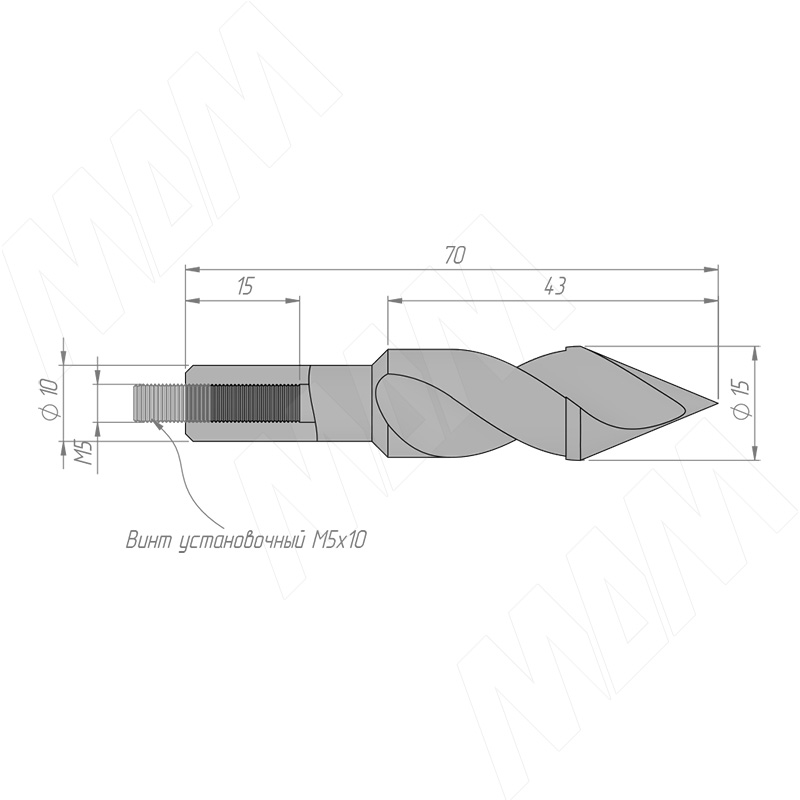 Размеры сквозного сверла, D=15мм, L=70мм, RH серия Standard (артикул 11010870)