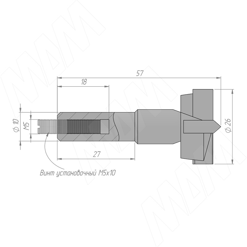 Размеры чашечного сверла, D=26мм, L=57мм, RH (артикул 12011357)