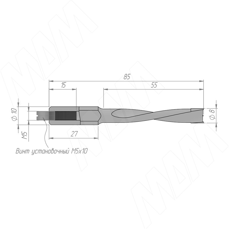 Размеры глухого сверла, D=8мм, L=85мм, LH (артикул 8020185)