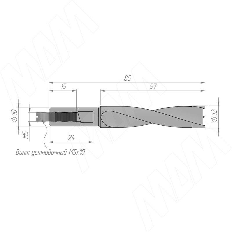 Размеры глухого сверла, D=12мм, L=85мм, RH (артикул 8010485)