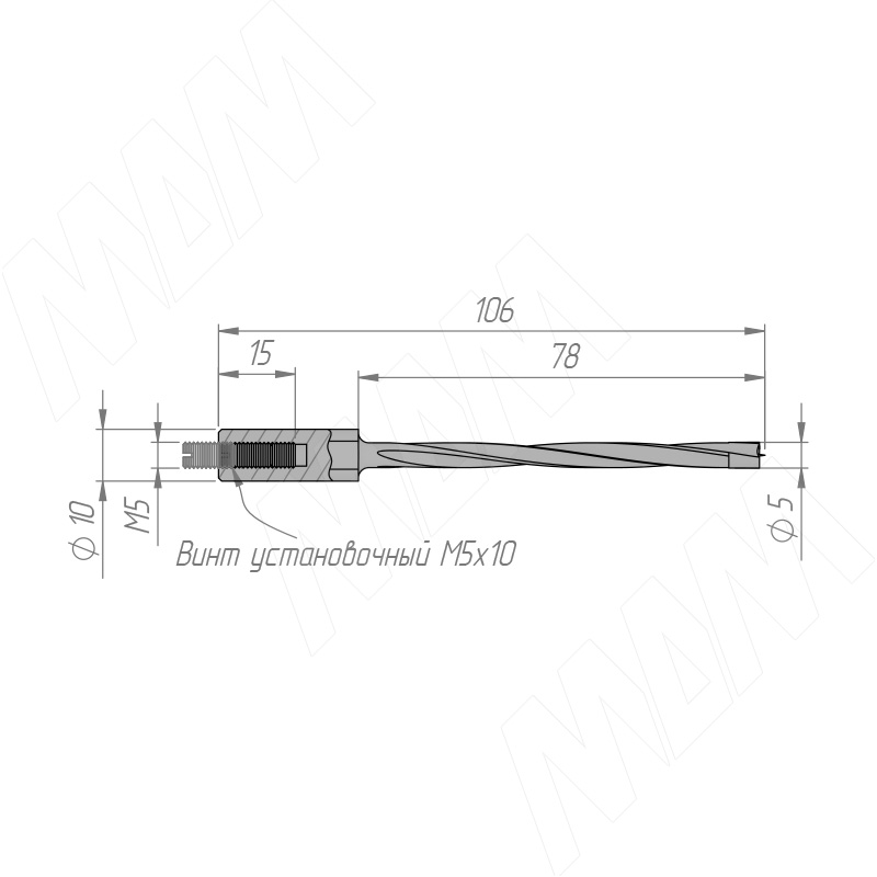 Сверло глухое D=5 мм, L=105 мм, B=65 мм, вращение правое