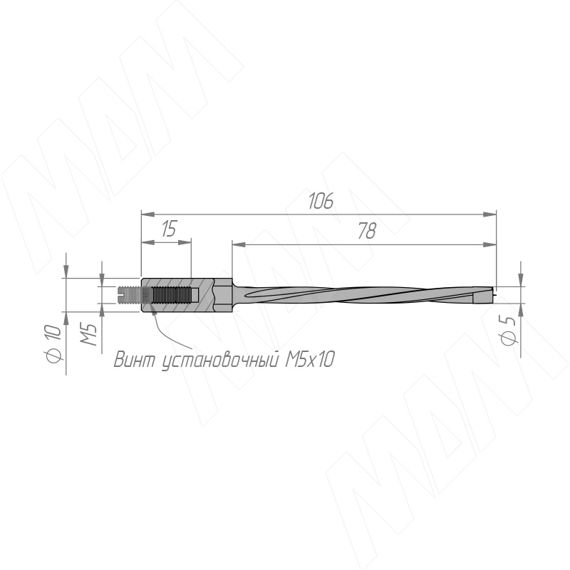 Сверло глухое D=5 мм., L=105 мм., B=65 мм, вращение левое